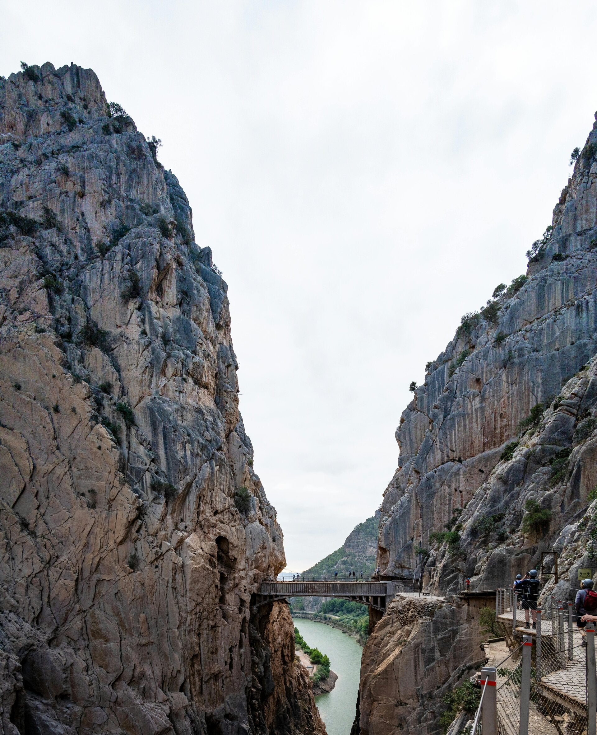Caminar por las pasarelas suspendidas sobre el desfiladero permite observar el paisaje desde una perspectiva única. En algunos puntos la sensación de altura es impresionante, mientras que en otros tramos el sendero se adentra entre paredes de roca que parecen cerrarse sobre el camino.